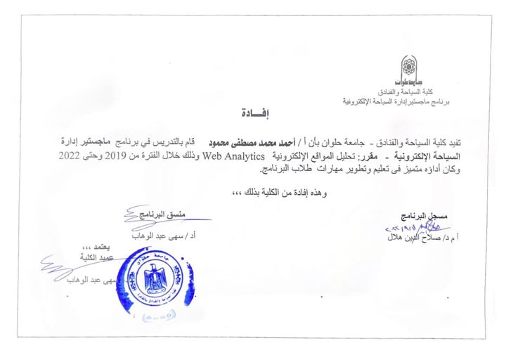 Beyond the industry, I’ve spent more than seven years as an Adjunct Lecturer of Web Analytics at Helwan University, teaching postgraduate students and sharing real-world insights. I’m currently advancing my academic and leadership journey as an MBA Candidate, combining practical experience with strategic knowledge to deliver meaningful impact for every client and project I work on.